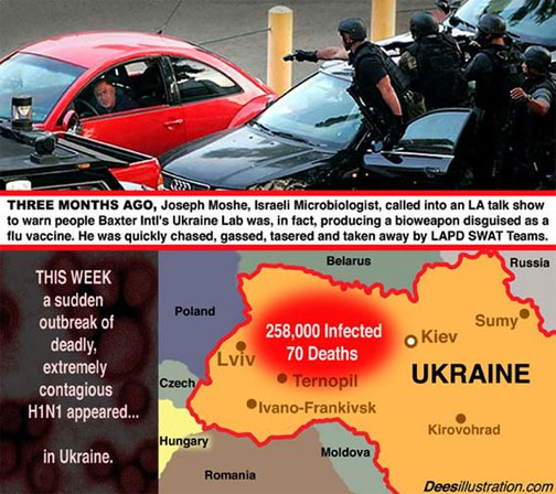 Моше заявив, що лабораторія Baxter на Україні саме і займалася виробництвом біологічної зброї. Всі ці події відбувалися на початку серпня, більш ніж за два місяці до нинішньої ситуації з епідемією грипу і ГРВІ в Україні.