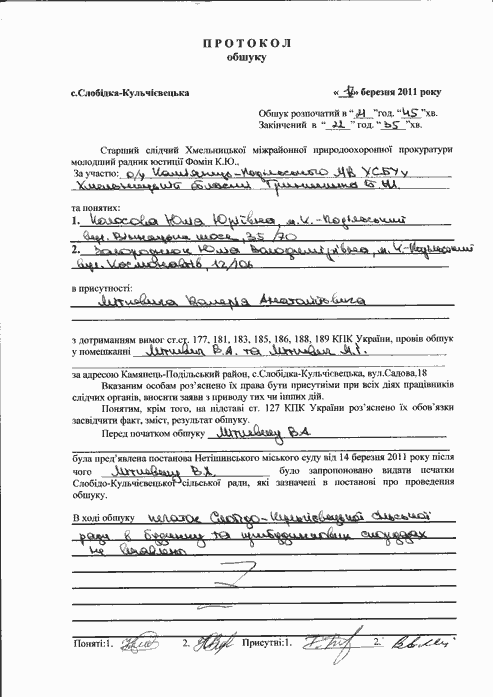 Актив громади села Слобідка–Кульчієвецька надав для публікації копії протоколів нічних обшуків та відкритий лист до Генерального прокурора України в підтримку сільського голови Міткевич Марії Іванівни, який ми пропонуємо вашій увазі: