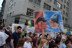 Як передає власний кореспондент УНІАН, кілька сотень протестантів зібрались перед будинком Постійного представництва України при ООН, де у Грищенка повинна була відбутися зустріч із представниками української громади.