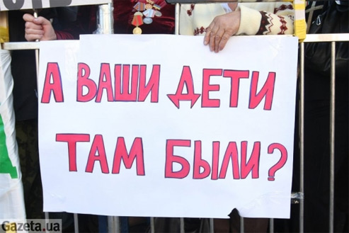 Разом з тим, голова парламентської фракції Партії регіонів Олександр Єфремов спробував виступити перед тисячами "афганців" і "чорнобильців", але його обплювали, облили водою і вимазали невідомою рідиною.