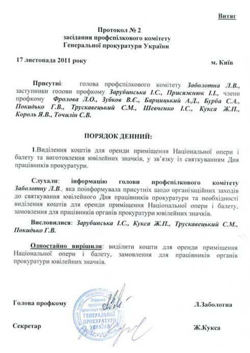 "Представники профспілкової організації працівників Генеральної прокуратури України обурені розповсюдженням недостовірної інформації від народного депутата однієї із політичних сил про начебто фінансові порушення під час святкування 20 річниці органів прокуратури", - йдеться у повідомленні.