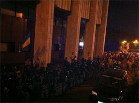 Спроба бійців "Беркуту" відтіснити учасників акції, котра супроводжувалася бійками та застосуванням газових балонів, зазнала невдачі. Народні обранці та прихильники опозиції залишаються на сходах Українського дому.