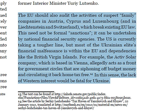 "Наприклад, компанія Activ Solar, що заснована у Відні, нібито виступає в якості основної для урядових кіл, які викачують бюджетні гроші і циркулюють їх назад без оподаткування. У цьому сенсі, відсутність західного інтересу була би згубною для України", - уточнив він.