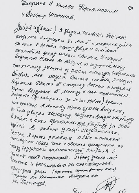 "Зараз я прийняв рішення щодо явки з повинною, тому що зрозумів, що вчинив злочин на замовлення грузинської політичної еліти, а я вважаю себе патріотом", - говориться в явці.