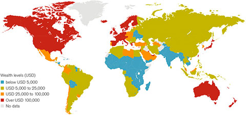 У звіті Global Wealth Report 2013, який підготувала фінустанова, зазначається, що середній річний дохід громадянина України становить менше 5 тис. доларів, що у десять разів менше, ніж у середньому у світі. У цю ж найнижчу на шкалі категорію, потрапили також більше половини країн Африки, Індія, Болівія тощо.