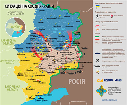 «Продовжується наступ українських військ на півночі Луганської та на заході Донецької областей», - зазначив він.