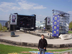 Організатори пояснюють - до Києва легше запрошувати світових зірок, аніж до Каховки. На найбільшому столичному стадіоні буде сцена завширшки 40 метрів, а на футбольному полі - спецпокриття для танців.