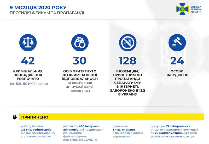 Подібні ботоферми значно активізувалися напередодні місцевих виборів. Тож СБУ активно протидіє інформаційним фейкам, антидержавній пропаганді та сепаратизму в інтернеті. Загалом у 2020 році за матеріалами Служби розпочато 42 справи за злочини проти основ національної безпеки, 24 осіб засуджено.