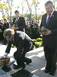 Говорячи про те, що «Україна має колосальний борг перед історичною пам’яттю», Президент Ющенко зауважив: «Ми зробили занадто мало, ми по суті пасемо задніх. Вставайте з колін, не живіть міфами 30-х років».