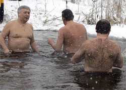 Після завершення освячення Віктор Ющенко згідно з народним звичаєм викупався у хрещенській воді. Для Президента України купання на Водохреща є вже доброю традицією.