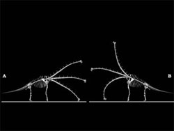 Гігантські травоїдні ящери - зауроподи мешкали на Землі в юрському і крейдяному періодах. На підставі знайдених залишків зауроподів учені відтворили їхній уявний зовнішній вигляд. Палеонтологи дійшли висновку, що ці динозаври пересувалися на чотирьох ногах, а їхня довга шия була направлена вперед (див. ілюстрацію до новини).