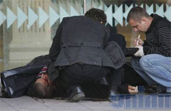 Через мить грабіжники відкрили вогонь по директорові і його охороні. Охорона у свою чергу відкрила вогонь у відповідь. У перестрілці був поранений водій нападників.