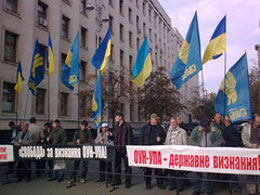 До учасників пікету вийшов головний юрист приймальні Президента Костюченко П. Д., якому заступник голови ВО "Свобода", голова Київської міської організації "Свободи" Андрій Мохник вручив звернення Політради Всеукраїнського об’єднання "Свобода" до Президента України Віктора Ющенка з вимогами присвоїти звання Героя України Степанові Бандері, визнати боротьбу ОУН-УПА національно-визвольною боротьбою Української нації та проголосити 14 жовтня – День створення УПА – державним святом.