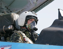 Президент Віктор Ющенко піарнувся на тренажері і вручив льотчикам прапор |