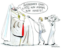 У УПЦ, якщо не помиляюся, замовник той же самий? Так от, він не поспішає. У його розпорядженні вічність - він почекає, поки його слуги відмовляться від дорогих телефонів, пересядуть з Мерседесів на щось простіше, а на вивільнені кошти побудують храм, або притулок для сиріт, або лікарню для незаможних.
