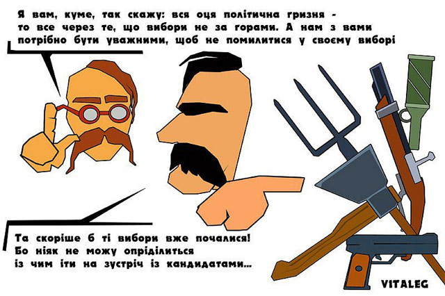Він також цитує голову НРУ Бориса Тарасюка щодо розбіжностей між БЮТ і НУ під час створення коаліції у 2006 році: "Затягуються переговори, бо Тимошенко з Морозом проти "Нашої України" зайняли спільну позицію, щоб в угоді не було згадки про ОУН-УПА, НАТО, української мови".
