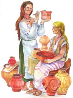 Трипільці. Малюнок зроблено на основі знахідок пам’яток Трипільської культури. Художник Оксана Слоневська